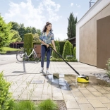 With adjustable nozzle distance you can easily tailor the performance to the surface – from stone and concrete to wooden decks. The water jet also creates a “cushion” effect that slightly lifts the attachment for easy maneuverability. The ergonomic handle makes it comfortable to clean vertical surfaces such as garage doors or facades.