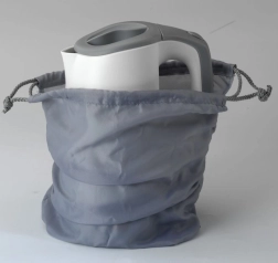 Practical accessories at every step – two plastic cups tuck directly into the kettle body to save space, and the protective pouch makes carrying and storage easier. Safety is ensured by automatic shut-off upon boiling and overheat protection.