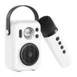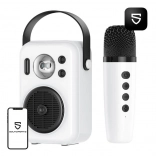 Both devices in the set feature a comfortable, portable design. The speaker measures just 8 x 11 cm and weighs 0.28 kg. The microphone, meanwhile, weighs only 0.078 kg and measures approximately 4 x 13 cm. This makes them easy to take with you wherever you want! In addition, there are non-slip silicone pads on the bottom of the speaker to ensure stable placement on any surface. No need to worry about it sliding or falling!