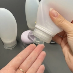 Elastic silicone bottles with a capacity of 100 ml are easy to squeeze, making it simple to dispense shampoos or lotions on the go.