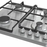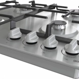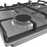 This stainless-steel gas hob combines a modern look with practicality for everyday cooking. The expanded cooking surface and wider spacing between burners provide ample room even for very large cookware, while cast-iron grates ensure stability and durability even at high temperatures.