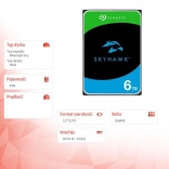 The Seagate SkyHawk 6 TB is a specialized 3.5" drive for camera systems with 24/7 operation. Thanks to the ImagePerfect firmware, it ensures smooth and reliable recording without drops, even under the load of multiple cameras simultaneously. Lower power consumption means less heat and higher long-term reliability.
