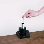 The mount can be secured to the desk with a clamp base, saving space. Alternatively, it can be attached directly to the desk grommet.