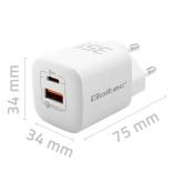 It supports USB‑C Power Delivery and a USB‑A port with Qualcomm Quick Charge 3.0, so it can charge up to about 60% in just 30 minutes (depending on the device). Weighing only 53 g and featuring a compact build, it’s ideal for home, office, and travel—perfect for smartphones, tablets, headphones, smartwatches, or a compatible laptop.