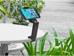 A compact, portable phone holder for devices 55–96 mm wide offering secure mounting, an adjustable angle, and hands‑free use at home, in the car, and on the go. Thanks to quick, tool‑free installation, you can easily attach it to a table edge, stroller, or dashboard, or use it as a standalone desktop stand.
