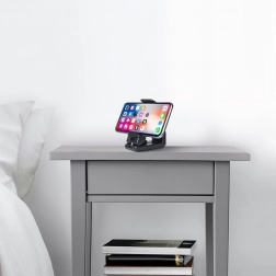 Installation takes moments: simply clip the holder to the table edge, a shelf, airplane tray table, or stroller handle. It also works perfectly as a desktop stand on your nightstand or desk. Thanks to its foldable design, it fits into a pocket or small handbag, so it’s always within reach.