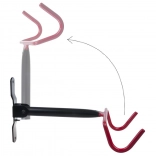 Soft red hooks protect the paint on the frame and ensure a secure, gentle hold.