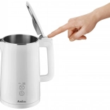 The stylish AMICA electric kettle with a 1.7 L capacity offers convenient control via a touch panel, a clear LED display, and safe operation thanks to SafeTouch double-wall technology. A reliable Strix/Otter controller ensures long service life, while the 360° rotating base, EasyOpen button, and cord storage compartment make everyday use a pleasure.
