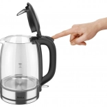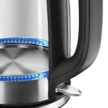 Turn ordinary boiling water into a real light show. The glass electric kettle equipped with LED lighting will make your daily preparation of favorite hot drinks more enjoyable. The LEDs impressively illuminate the boiling water and the kettle’s interior while adding a distinctive modern touch to your kitchen.
