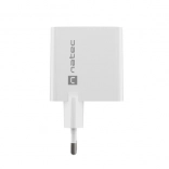 Faster and more efficient charging is provided by the Natec Ribera GaN with two USB ports (USB-A and USB-C) and 45 W power. It supports fast charging technologies like Power Delivery 3.0, Quick Charge 3.0, Samsung AFC, Huawei FCP/SCP, and uses the PPS protocol to automatically adjust charging parameters. It is suitable for charging various devices regardless of brand, thus saving your time.