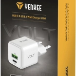 Compact and Powerful Yenkee VOLT Charger offers fast and safe charging of your electronic devices. With dual USB-A and USB-C ports, this charger can charge two devices simultaneously and provides a maximum power of 20W.