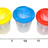 The lid features four grooves for resting brushes, keeping brushes within reach and preventing paint drips. The cup is compact, stable, and available in attractive colors: yellow, red, blue, and green.