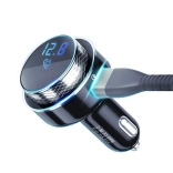 Enjoy your drive to the beat of your favorite music with this universal in-car FM transmitter. It offers clear and stable sound, pairing via Bluetooth, hands-free calling, two USB‑A ports up to 30 W, and LED backlight for easy use in the dark. It supports QC 3.0 fast charging and also works as a voltmeter to monitor the car’s electrical system voltage.