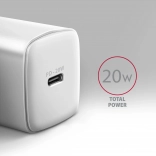 Compact wall charger AXAGON ACU-PD20W for fast charging of mobile devices. With a total output of 20 W, the charger can power phones, tablets, and other mobile devices at the highest possible speed. The adapter offers a reversible USB-C connector.