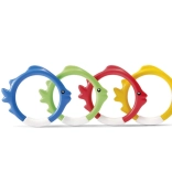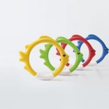 The IN TEX fish-shaped diving ring set is an ideal aid for playful diving practice. Thanks to the bold colors and stable upright position on the pool bottom, kids can easily find the target and happily practice breath-holding and underwater orientation.