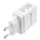 Compact everActive mains charger with 3× USB and iQ Smart Charging technology charges up to three devices at once. It offers fast and safe charging for smartphones, tablets, and other gadgets, features protection against overvoltage, short circuit, and overheating, and thanks to Energy Efficiency Class VI it has minimal losses and standby consumption.