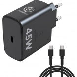 The device provides highly efficient charging with Power Delivery 3.0 technology. It quickly charges various devices using a USB-C port with power up to 45 W.