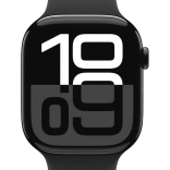 Apple Watch Series 10 comes in an elegant onyx aluminum version with a black sport band. It offers the largest and most advanced OLED display, innovative health data, and fast charging.