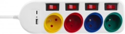 Four colored sockets with child protection ensure safety for households with children and easy differentiation of individual appliances.