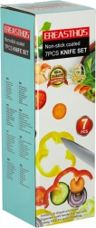 Blades: stainless steel, handles: plastic, stand: acrylic