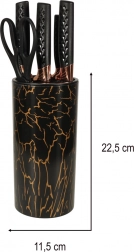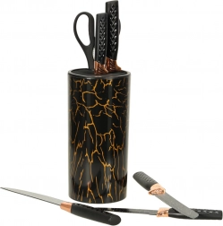 Discover exceptional design with black and copper accents that enhance the look of your kitchen. The marble stand provides a practical and aesthetic storage solution that keeps your knives organized and easily accessible.