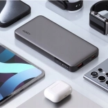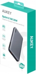 The compact AUKEY Sprint X 10K power bank with a 10,000 mAh capacity and 30 W output offers fast charging with PD 3.0 and QC 3.0, two outputs USB‑C + USB‑A, an accurate LED display for battery status, and a low‑current mode for headphones or smartwatches. Lightweight, pocketable, and ideal for travel and flights.