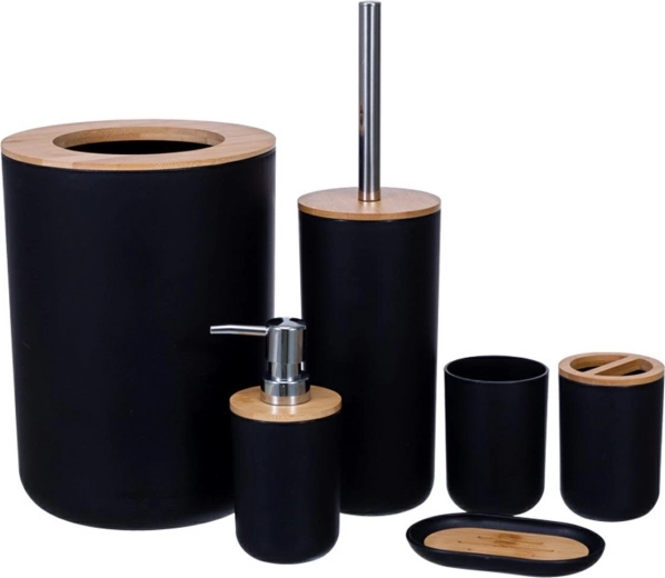 Exclusive 6-piece bathroom set made of aesthetic and durable polypropylene. Perfect for any bathroom regardless of style and layout. It works especially well as a detail that refreshes the interior. Thanks to its neutral color, it matches bathroom fixtures and accessories.