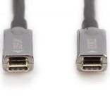 Active hybrid USB‑C–USB‑C cable for transmitting uncompressed video and audio up to UHD 4K @ 60 Hz with bandwidth up to 21.6 Gbit/s. Thanks to its optical‑copper construction, it is lightweight, flexible, and resistant to EMI, ideal for longer runs (10 m). Supports DisplayPort 1.2 and USB‑C DP Alt Mode, works on a plug and play basis with no external power.