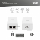 The active midspan PoE injector for indoor use combines data and power into a single Ethernet cable and significantly simplifies the installation of network devices. It supports IEEE 802.3at (PoE+) with backward compatibility with IEEE 802.3af, provides 52 V DC / 0.58 A output (up to 30 W), and works at 10/100/1000 Mb/s. Two RJ45 ports (LAN and PoE) enable seamless power and data transmission over distances of up to 100 meters via Cat5e/Cat6 cable.