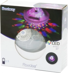 The BESTWAY floating LED pool light is a stylish and practical accessory for evening swims, garden parties, and romantic moments. With no cables or complex installation, it provides striking surface illumination in 4 colors (red, blue, yellow, green) and 7 dynamic modes. Just insert the batteries, place it on the water, and press the button.