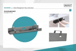 The cable organizer is designed to efficiently maintain cleanliness and organization on your desk. Installation is easy and quick with screws, allowing for fast attachment under any desk. The minimalist design ensures that cables and power cords are discreetly hidden, giving a professional look to your workspace.