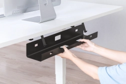 The cable organizer attaches easily using screws under the table, ensuring quick and secure installation.
