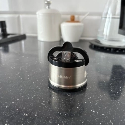 Ruhhy Knife Sharpener is an ideal choice for the home kitchen, thanks to its compact design and easy handling. Made from quality metal and plastic, it ensures quick and effective sharpening.