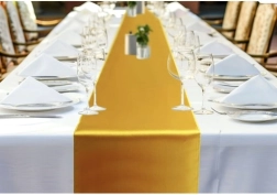 Golden satin table runner can enhance any dining experience with its elegant appearance and high material quality, ensuring long-lasting durability and resistance.