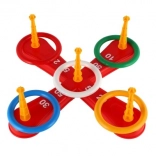 This Throwing Game X with Rings is a perfect blend of fun and education. A great way to train children's hand-eye coordination while they play. The game includes a cross base with five stands and colorful rings to throw onto the stands to collect points.