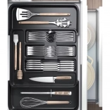 In the basic setup it offers 5 compartments, and when expanded up to 7, giving you more room for cutlery and kitchen utensils. The smooth surface just needs a wipe with a damp cloth—quick and hygienic.
