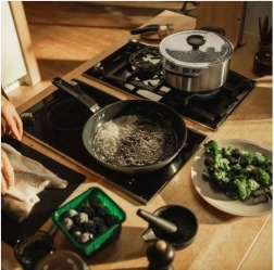 The pan is suitable for all types of stoves, including induction, and is resistant to temperatures up to 270 °C.