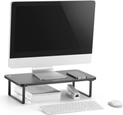 The universal Maclean MC-933 monitor or laptop stand helps you achieve the correct screen height for comfortable and healthy seating. By raising the monitor to eye level, it reduces strain on the neck and back and keeps your desk tidy by utilizing the space beneath it.