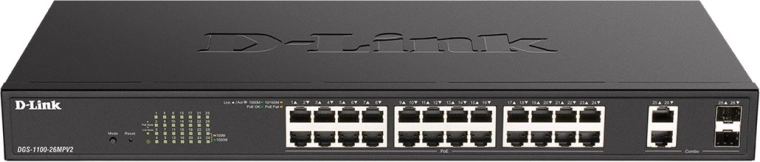 The DGS-1100 series includes switches with a high PoE power budget for easy installation of IP phones, wireless access points, and IP cameras.