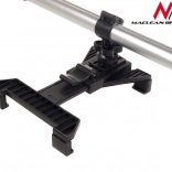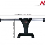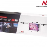 Universal car holder for tablets, which can be easily mounted between seats to the driver's and passenger's headrests. Adjustable arm length allows installation in almost any car.