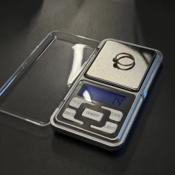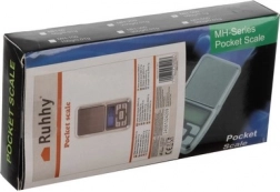 The compact RUHHY pocket scale offers 0.1 g accuracy and a capacity of up to 500 g, ideal for jewelry, coins, herbs, or medication. It features a backlit LCD display, TARE function, multiple measurement units, and auto power-off. Thanks to the protective lid and power from 2× AAA (included), it’s ready to use right out of the box.