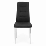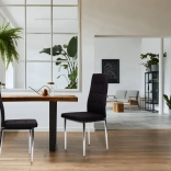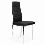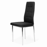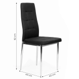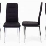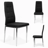 Enhance your home with this set of four modern black chairs with chrome legs, designed for stylish and comfortable seating. These chairs easily match any family table and their elegant design in black faux leather gives your interior the perfect touch. They are an ideal choice for those looking for modern solutions without sacrificing comfort.