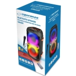 The ESPERANZA Karaoke Singer speaker is equipped with a built-in FM radio, allowing you to listen to your favorite radio stations. Two microphone inputs make this device the perfect choice for karaoke parties. With the remote control, you can easily manage settings without accessing the devices. Powerful sound and efficient LED lighting provide an unforgettable experience both at home and outdoors.
