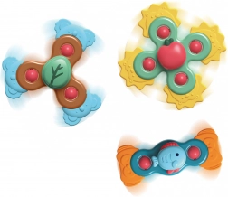 A practical set of baby teethers with a stable suction cup brings relief during teething and fun thanks to the rotating “spinner” effect. The package includes 3 pcs of teethers measuring approx. 13–14 cm, which can be attached to a smooth surface for safe and hygienic use without falling to the floor.