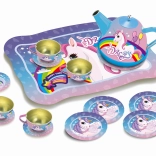 A stylish tea set with a unicorn motif brings joy to every child’s pretend play. Thanks to the sturdy metal design, it withstands enthusiastic everyday serving. The colorful suitcase with a handle makes it easy to carry and store all parts in one place.