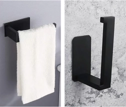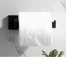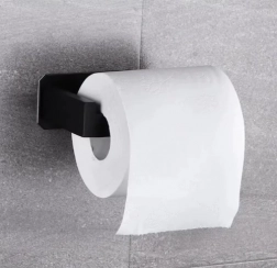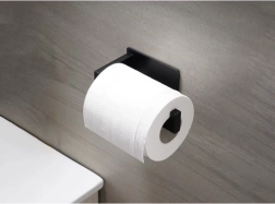 An elegant and durable toilet paper holder in matte black stainless steel for modern and industrial bathrooms. It offers strong tape mounting, is moisture-resistant, and can be removed without damaging the surface. Thanks to the smart hook end, the paper won’t slide off, and the tool-free installation is quick and clean.