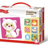 Puzzle ZigZag Creatures from Far Far Land is a toy designed for children aged 3 and above, offering fun with domestic animals in 6 different pictures. Colorful designs and special zigzag cutting enhance the playing experience.