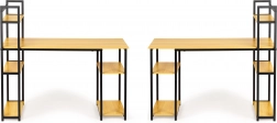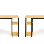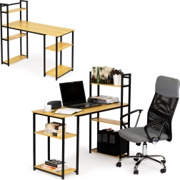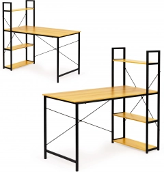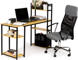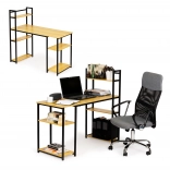 The writing desk stands out with its blend of light oak and metal, giving a modern and industrial look suitable for any office or study.