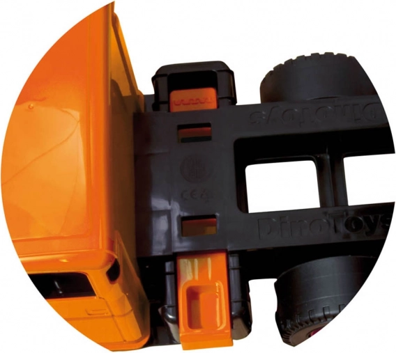 The toy is easy to grip by the handle above the cab, easy to clean, and there’s no risk of a broken steering wheel. Children from 12 months can safely sit on the truck — it won’t tip or crack and can carry up to 100 kg.