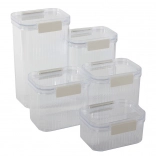 This practical set of 5 food containers features a strong locking clip and high-quality silicone seal for maximum freshness. The transparent walls allow instant content checks without opening, and the stackable design saves space in cabinets and drawers.